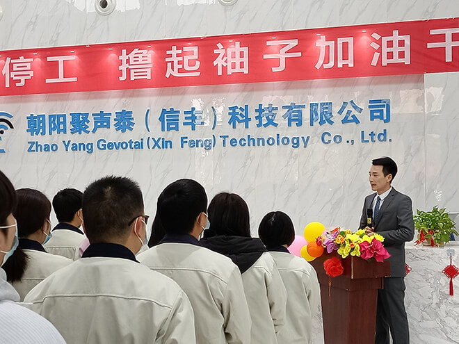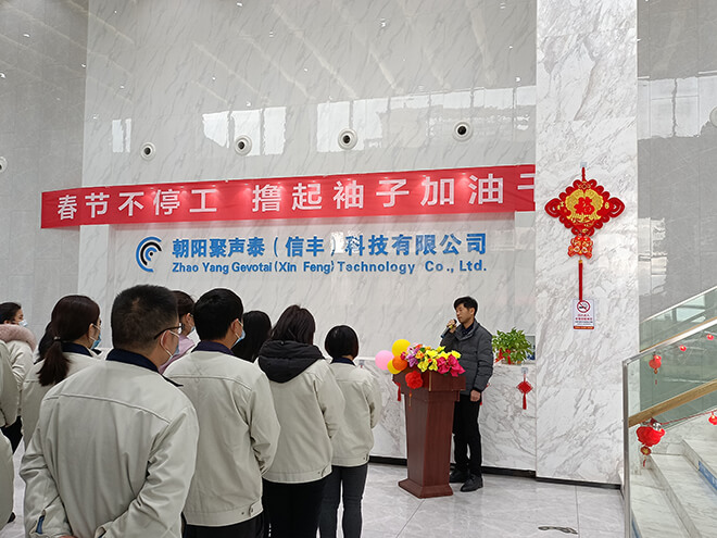 2022年2月8日,9:00農(nóng)歷大年初八,氣溫驟降,而在聚聲泰公司里卻有另一番景象,公司內(nèi)鞭炮共鳴,煙花齊放,迎來(lái)新年上班的開(kāi)工第一天,開(kāi)工儀式正式開(kāi)始,總經(jīng)理郭橋生、副總經(jīng)理談國(guó)民先生作了重要講話,在公司研發(fā)大樓與公司管理層齊聚一堂,舉行了歡樂(lè)的開(kāi)工儀式,總經(jīng)理郭橋生在儀式上,感恩聚聲泰家人們一年的辛勤付出,及對(duì)我們2022年的期望,指出2022年的工作目標(biāo)與要求,展示聚聲泰的核心價(jià)值觀:“相互尊重、全力以赴、引領(lǐng)創(chuàng)新、服務(wù)共享”。
