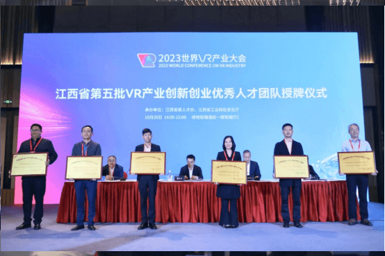 20日下午,2023世界VR產(chǎn)業(yè)大會(huì)第五批VR產(chǎn)業(yè)創(chuàng)新創(chuàng)業(yè)優(yōu)秀人才團(tuán)隊(duì)授牌儀式舉行,副省長(zhǎng)夏文勇、省政府副秘書長(zhǎng)熊科平、省工信廳廳長(zhǎng)應(yīng)炯、省委組織部副部長(zhǎng)王亞青出席儀式。公司董事長(zhǎng)郭橋生、企劃辦袁志遠(yuǎn)參加儀式。 活動(dòng)現(xiàn)場(chǎng),朝陽聚聲泰(信豐)科技有限公司智能聲學(xué)及語言識(shí)別工程研究中心團(tuán)隊(duì)等10個(gè)人才團(tuán)隊(duì)入選江西省第五批VR產(chǎn)業(yè)創(chuàng)新創(chuàng)業(yè)優(yōu)秀人才團(tuán)隊(duì),各獲省人才發(fā)展專項(xiàng)資金100萬元資助。公司董事長(zhǎng)、“智能聲學(xué)及語言識(shí)別工程研究中心團(tuán)隊(duì)”負(fù)責(zé)人郭橋生代表團(tuán)隊(duì)接受夏文勇副省長(zhǎng)授牌。
